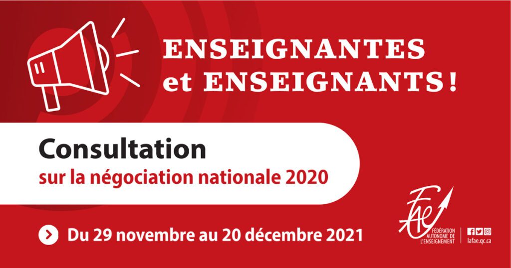À titre d’enseignante et d’enseignant membre des syndicats affiliés à la FAE, vous êtes donc invité(e) à vous prononcer sur le processus de négociation ayant conduit à la signature de l’Entente nationale 2020-2023.