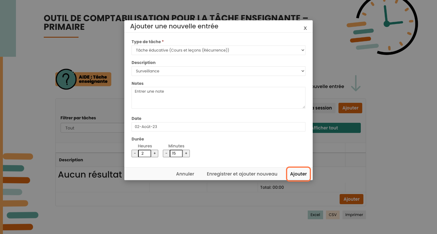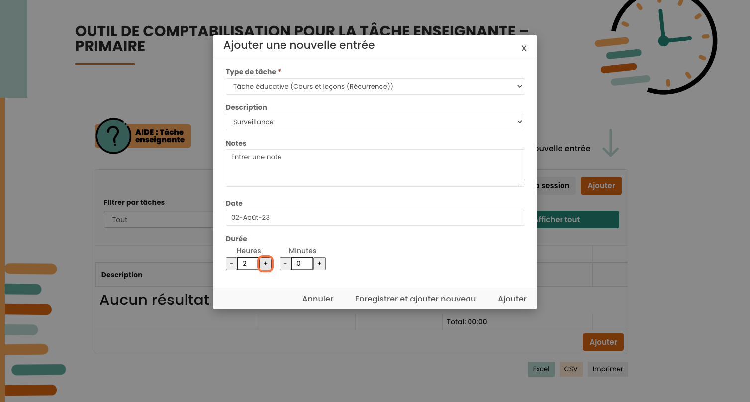 Entrez une durée en cliquant sur le + ou le -.