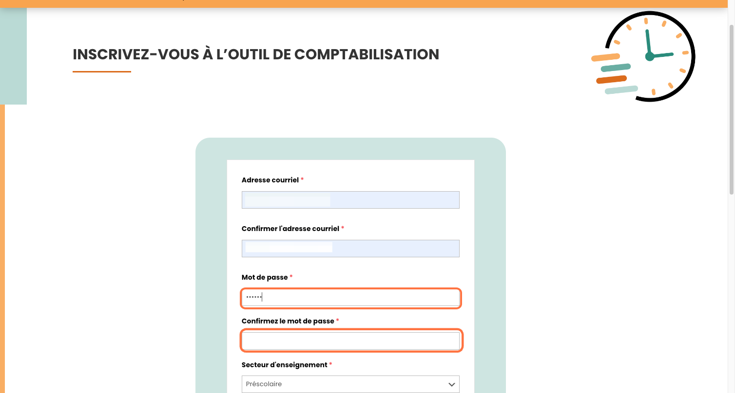 Saisissez votre courriel et confirmez-le.