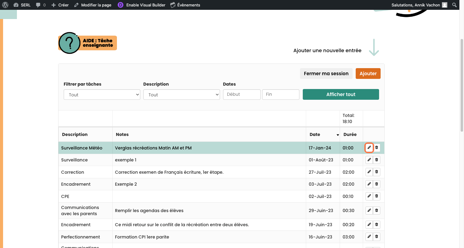 Modifier une entrée