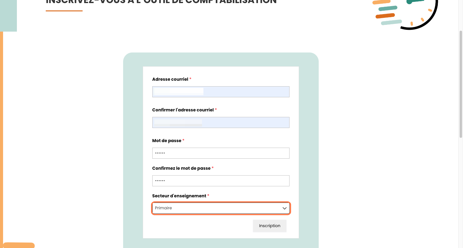 Cliquez sur Inscription.