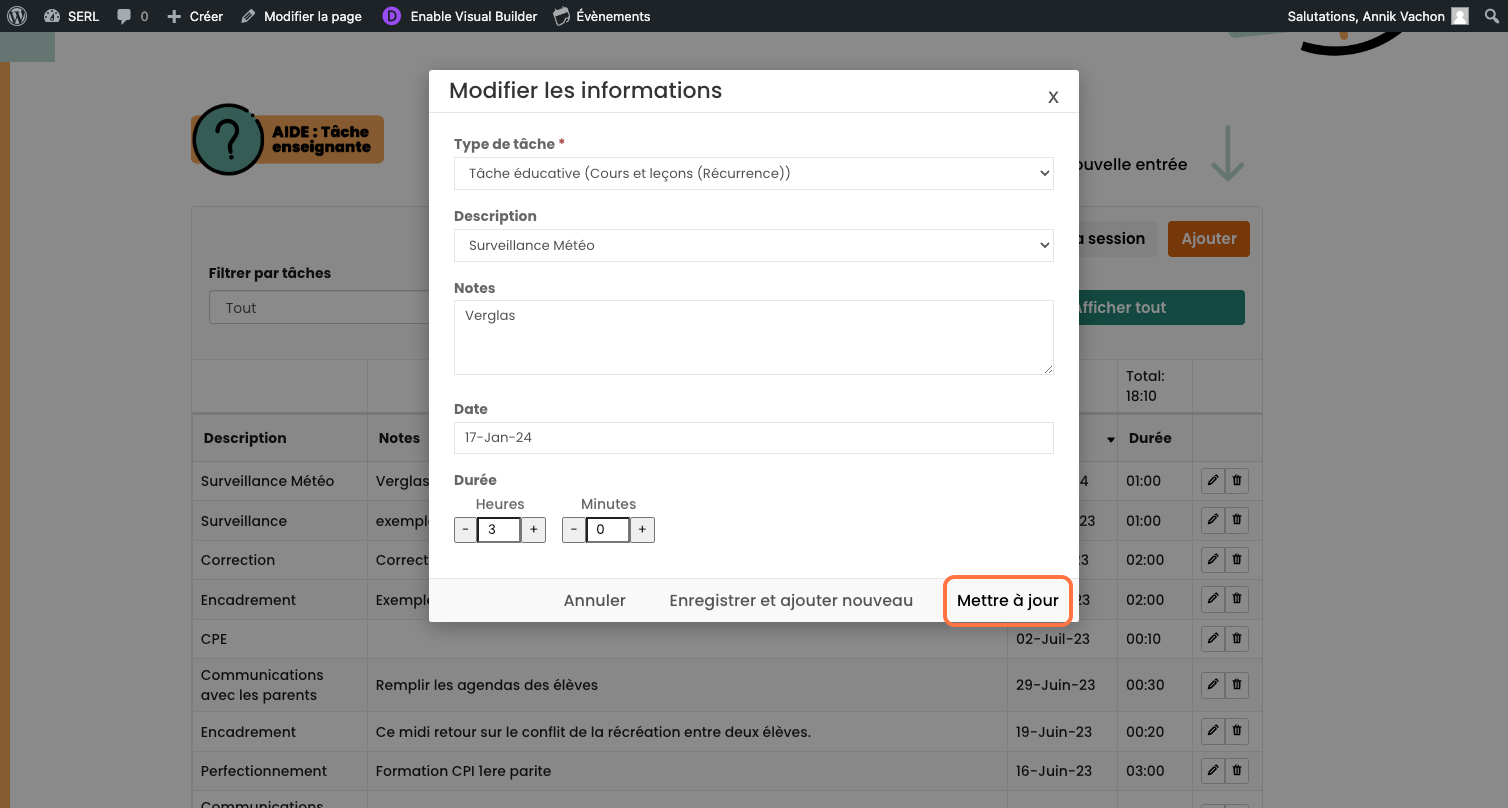 Cliquez sur Mettre à jour pour sauvegarder les changements.