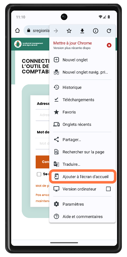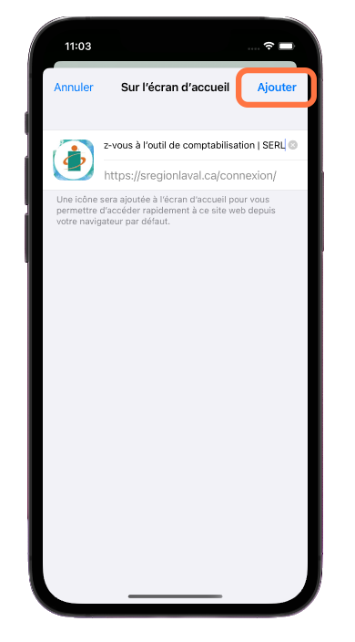 Appuyer sur la mention « Ajouter à l'écran d'accueil ».