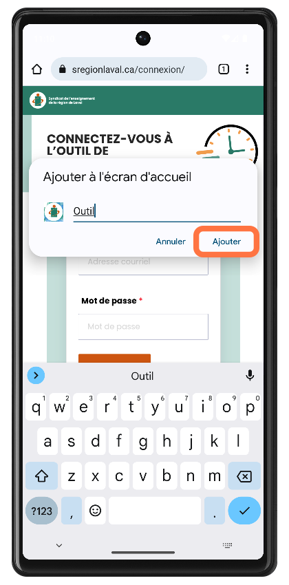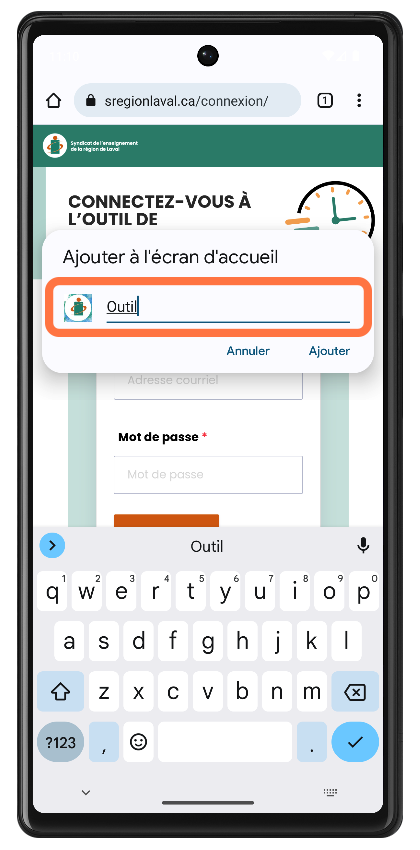 Ajouter un raccourci vers l'outil sur votre android
