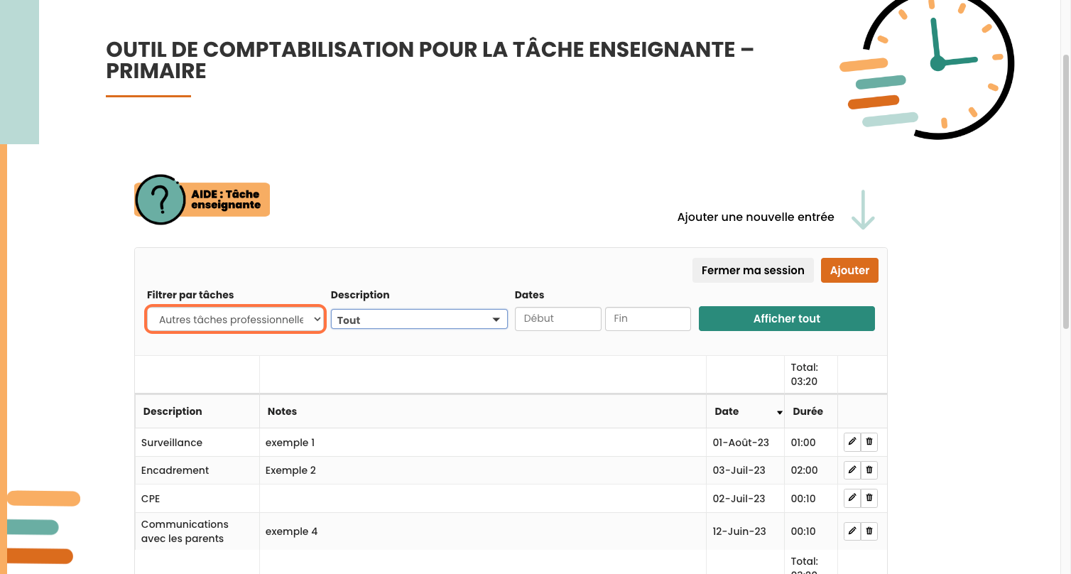 Sélectionner le type de tâche désiré. Toutes les tâches de ce type seront affichées dans le tableau.